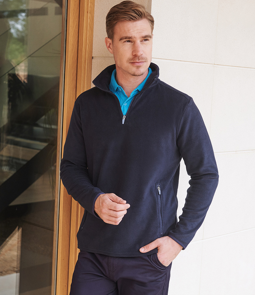 100% polyester. Anti-pill finish.Unlined.Zip neck with soft collar stand.Shoulder yoke panel.Two front zip pockets.Bound cuffs.Twin needle open hem.Cut out label.