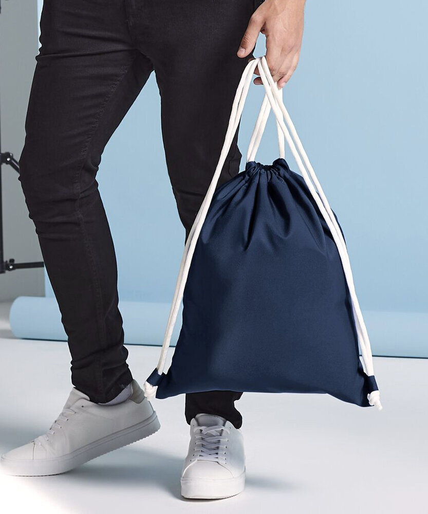 300D Polyester. Tearaway label for ease of rebranding. Hidden stash pocket. Chunky draw cords. Water-resistant fabric.