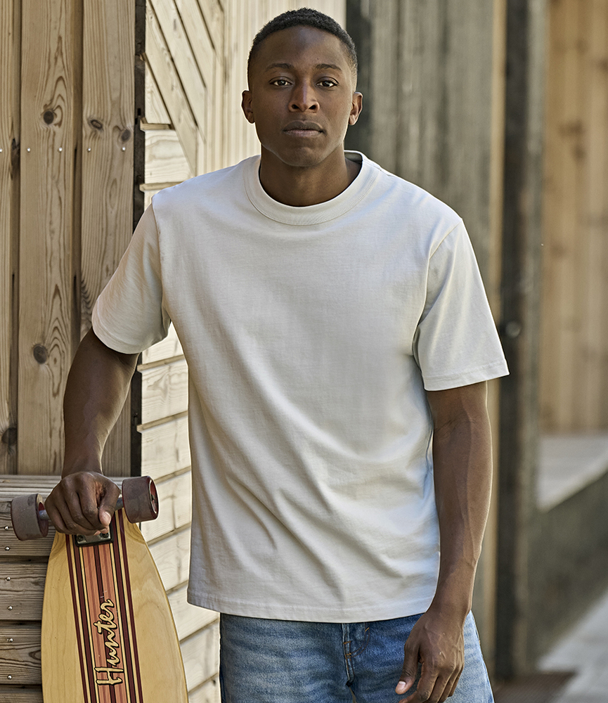100% organic ringspun combed cotton. Double pre-shrunk.Enzyme washed.Silicone treatment.Oversized fit.Wide 1x1 ribbed collar.Twin needle stitching.Tag free.